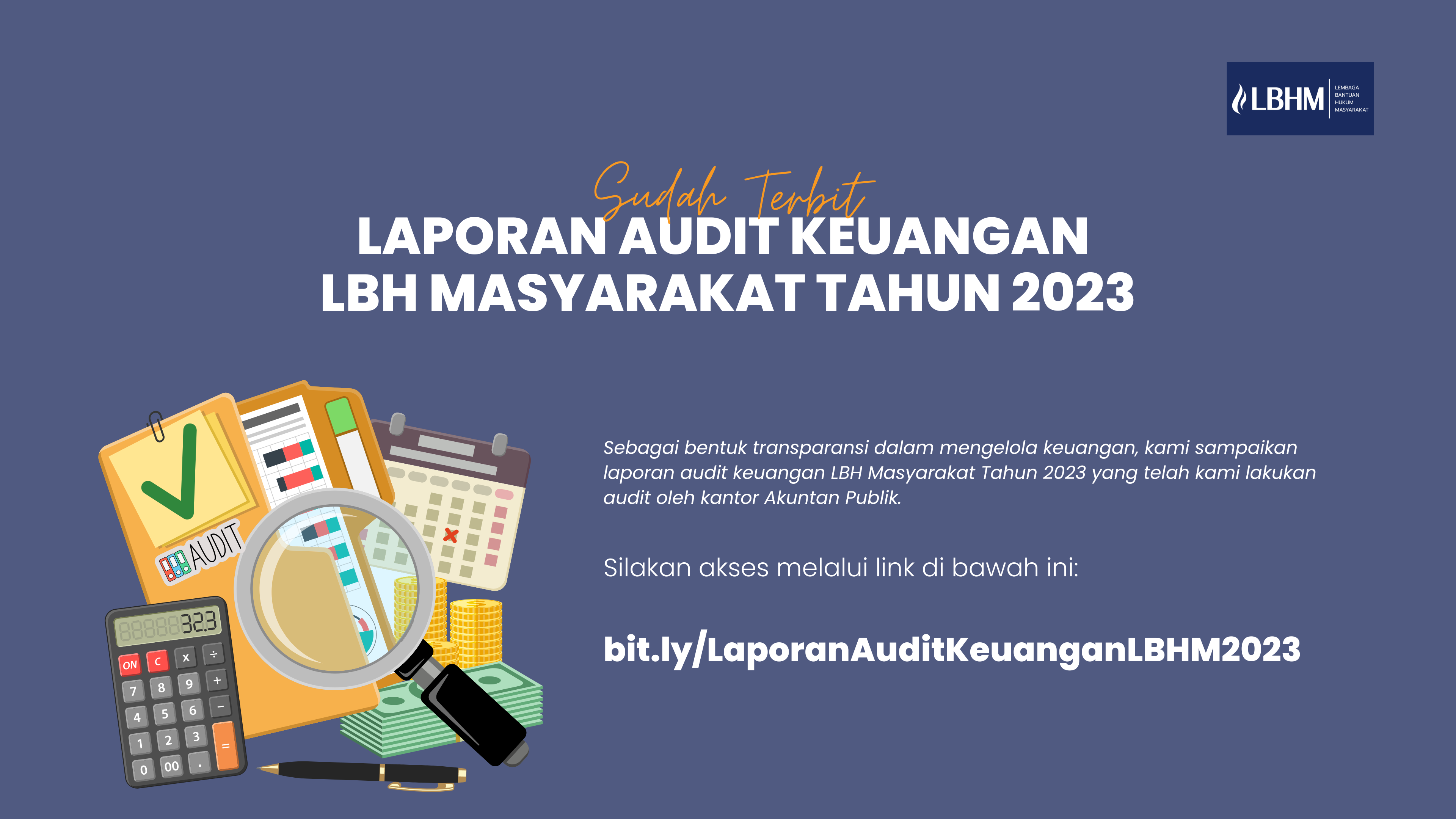 Sebagai bentuk transparansi dalam mengelola keuangan, kami sampaikan laporan audit keuangan LBH Masyarakat Tahun 2023 yang telah kami lakukan audit oleh kantor Akuntan Publik.