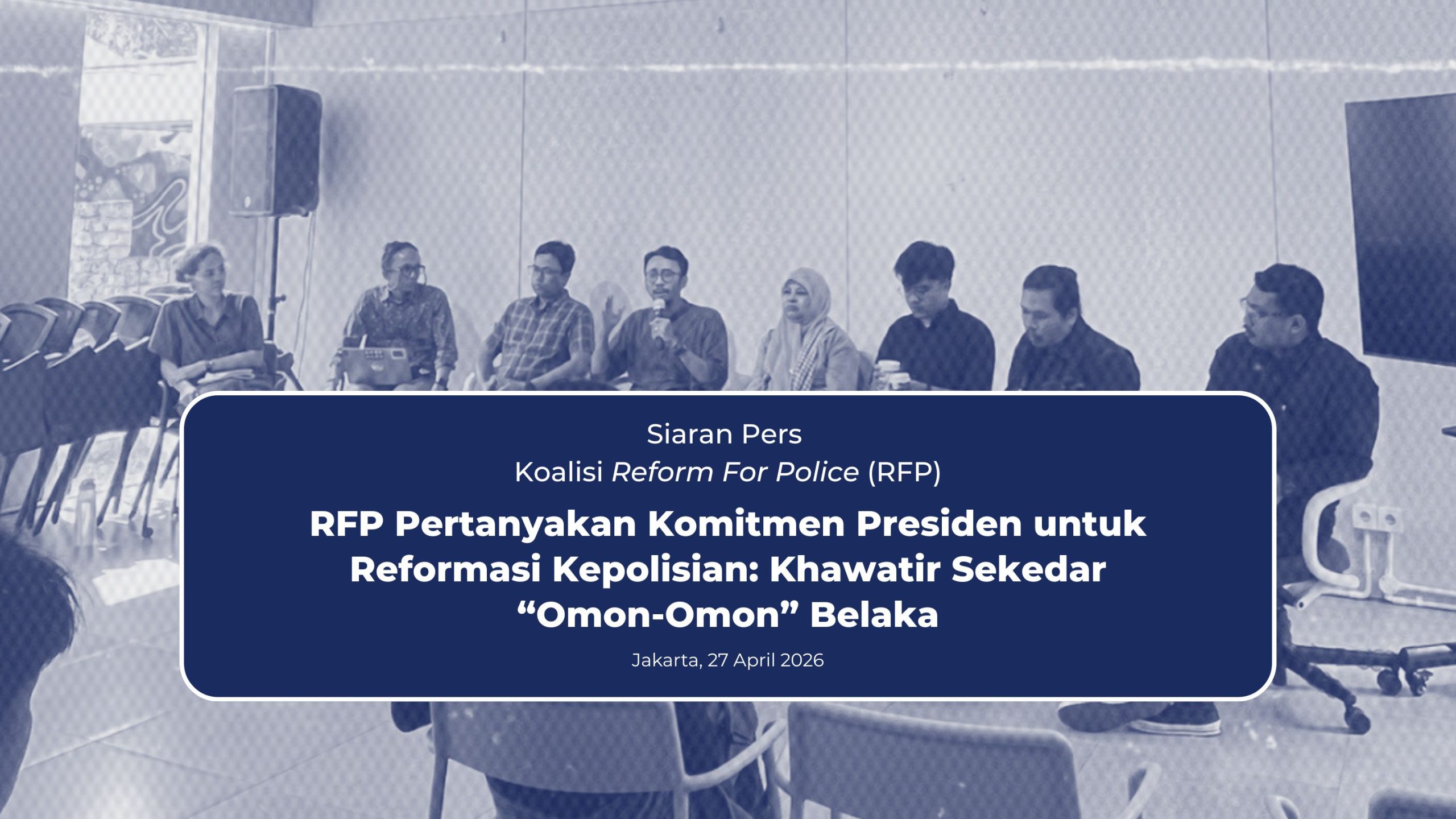 Koalisi RFP menagih akuntabilitas pelaksanaan reformasi kepolisian yang telah dijanjikan Presiden sejak November 2025 lalu. Ketiadaan informasi dan tindak lanjut mengenai hasil kerja Komisi Percepatan Reformasi Polri menandakan arah kegagalan Presiden Prabowo Subianto dalam mereformasi institusi Kepolisian.